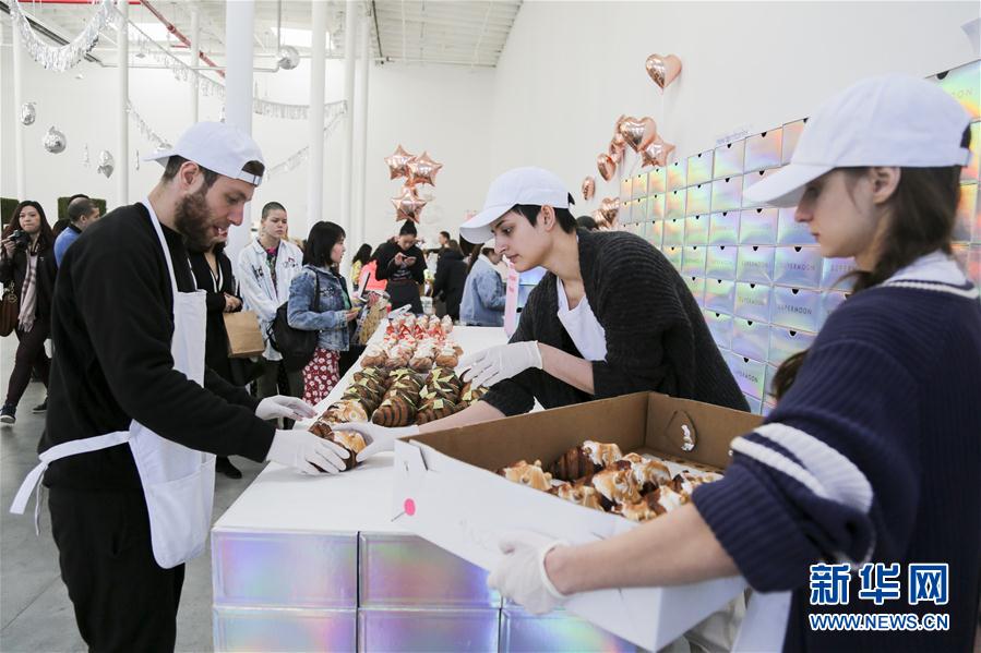3月18日,在美國紐約,工作人員在甜品節(jié)上準備出售熱門甜品。一年一度的紐約“甜品目標”甜品節(jié)于17日開幕,20多家甜品展商在現(xiàn)場展示造型精美、創(chuàng)意十足的美味甜品,吸引超過5000名甜品愛好者報名參加。甜品節(jié)還精心設置了美拍專區(qū),方便人們在享用甜品的同時在社交平臺上分享甜蜜時刻。新華社記者王迎攝