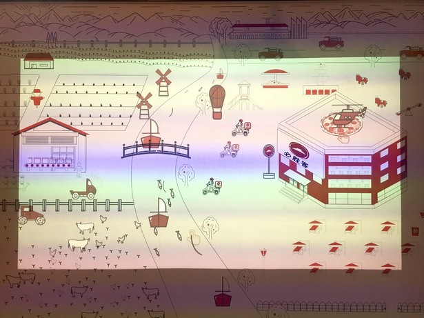 除了“情緒地帶”,智慧餐廳還提供了多元化的互動服務。門店等位區(qū)有一整面具有奇幻動感效果的投影互動墻,通過獨特的觸摸啟動可以探索必勝客的比薩從原料種植、加工、生產(chǎn),一直到制作成品、奉客、外送等一系列過程,為顧客提供趣味十足的多感官虛擬互動體驗,讓無聊的等位時間也變得興味盎然。
