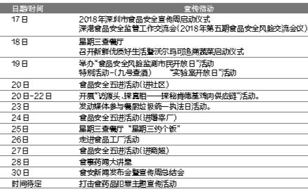 深圳市2018年食品安全宣傳周全市層面活動安排表