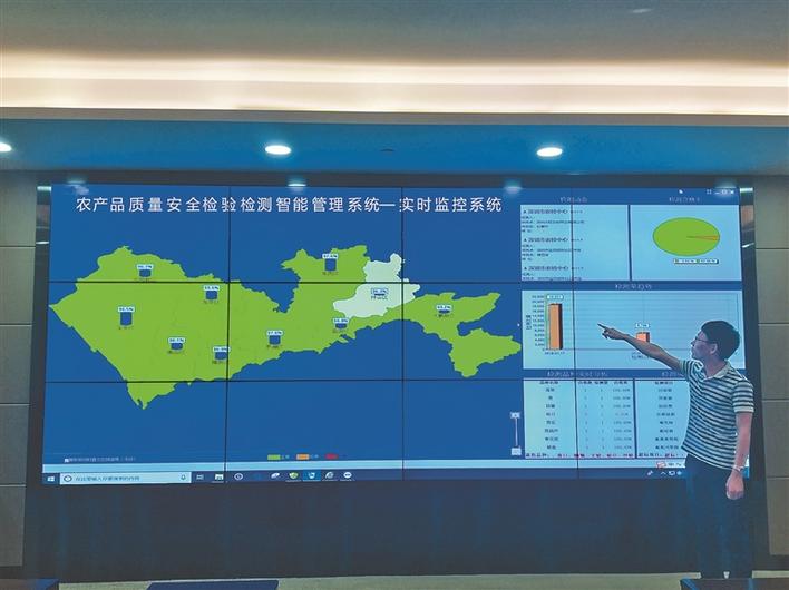 對于農(nóng)產(chǎn)品質(zhì)量安全檢驗(yàn)檢測智能管理系統(tǒng)將來的功能設(shè)想,農(nóng)檢中心工作人員也向記者進(jìn)行了模擬展示,整個(gè)智能管理系統(tǒng)將會有“數(shù)據(jù)查詢”、“抽檢動態(tài)”、“實(shí)時(shí)展示”等多種功能。在“實(shí)時(shí)展示”中,記者看到屏幕上出現(xiàn)了深圳十區(qū)(新區(qū))的電子地圖,每個(gè)區(qū)(新區(qū))的農(nóng)產(chǎn)品檢測合格率都可以按照年度、月度、每天進(jìn)行顯示,不僅如此,每個(gè)區(qū)(新區(qū))所有街道的檢測合格率也都能在電子地圖上展現(xiàn)出來。