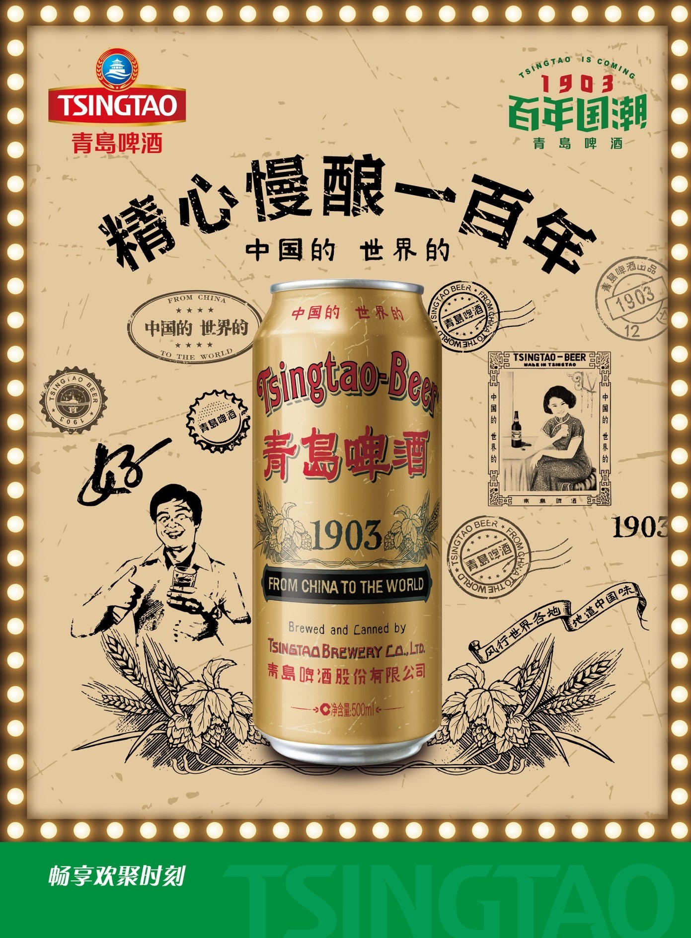 經(jīng)典1903國(guó)潮罐是青島啤酒“向經(jīng)典致敬,再造精釀傳奇”理念下推出致敬經(jīng)典的力作,采用青島啤酒1903年“兩段法低溫長(zhǎng)時(shí)間慢熟”獨(dú)特且傳統(tǒng)的釀造工藝,始終堅(jiān)持工匠精神,從原料篩選到工藝釀造的每一個(gè)環(huán)節(jié),都像雕琢藝術(shù)品一樣精致打磨,精心慢釀,造就了麥香濃郁醇香四溢的口感和體驗(yàn),其罐體復(fù)刻了百年前經(jīng)典瓶貼畫面的匠心細(xì)節(jié),復(fù)古元素與國(guó)際時(shí)尚潮流融于一體,是復(fù)古和時(shí)尚的典范。