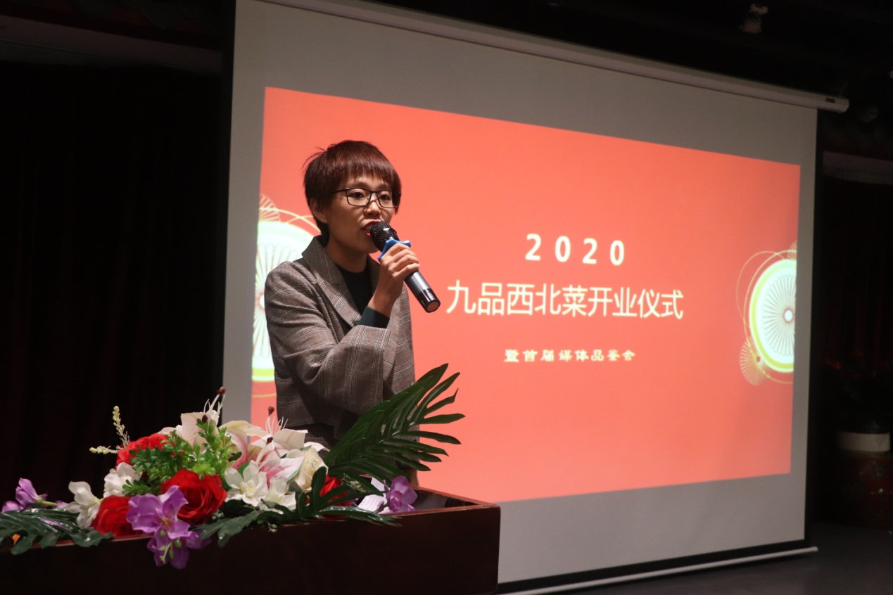 本屆媒體品鑒會由“九品西北菜”創(chuàng)始人兼出品總監(jiān)賈淑萍女士歡迎致辭,并且分享了關于品牌創(chuàng)始背后的故事。“九品西北菜”是傾金河建材集團之力,萃取20多年用心精華,嚴格把控菜品供應鏈,歷史20年,打造出來的新品牌。
