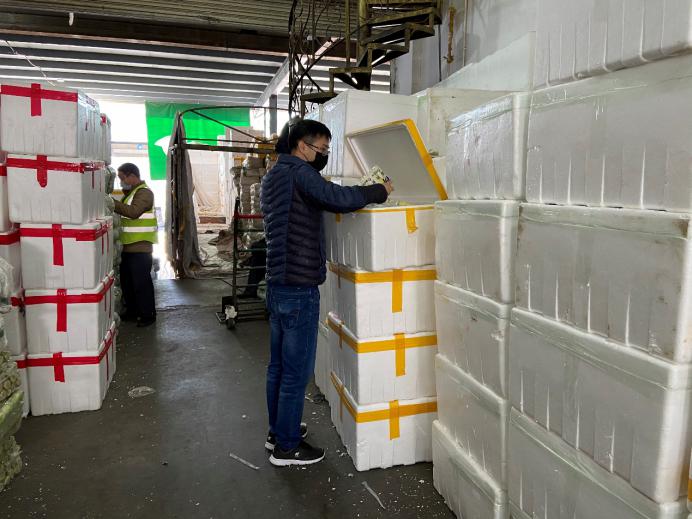 市場的檔主、物流車司機(jī)、加工工人,全部都帶上口罩,看新聞講跟人講話要保持距離,但忙起來真顧不了那么多,大家都在“搶貨”,這頭跟檔主商量好,那頭貨可能被拉走了?!柏浺阶约旱募庸ぶ行模潘闶悄愕?。”因?yàn)榇汗?jié)批發(fā)市場的檔口工人回去一大半了,沒人送貨,緊張的時(shí)候,有女同事干脆自己借一輛三輪車,把談好的貨源直接拉走。