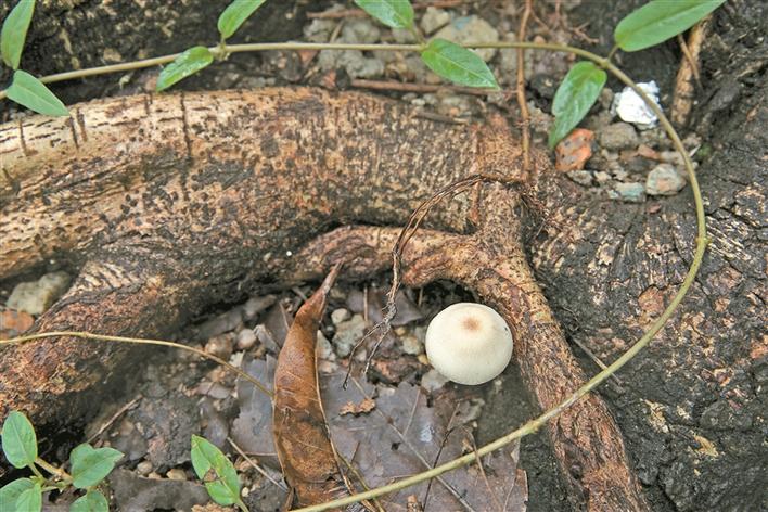 剛剛冒頭的鉛綠褶菇。深圳晚報(bào)記者陳玉攝