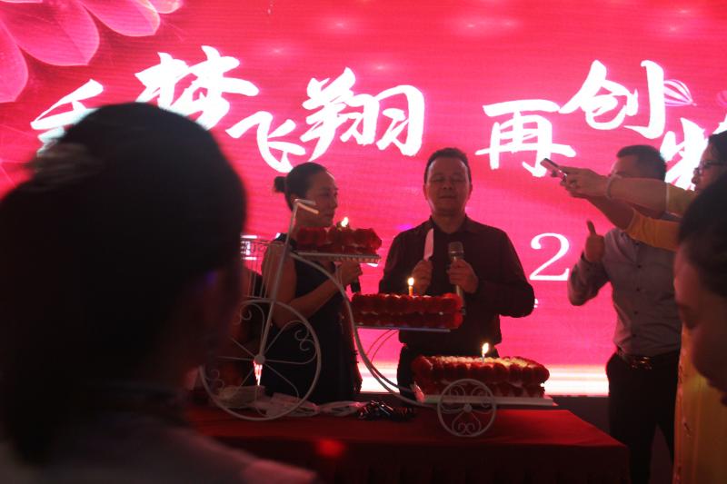 晚宴環(huán)節(jié),精彩節(jié)目不斷,T臺秀、舞蹈表演、歌曲演唱、小品表演、自由唱跳環(huán)節(jié)等,由此,慶典進入晚宴和抽獎環(huán)節(jié)。開場酒過后,全體同仁一邊就餐一邊欣賞表演節(jié)目,熱鬧喜慶。當(dāng)工作人員推出應(yīng)典蛋糕時,譚總、周總一同上臺切蛋糕與全體嘉賓一起分享,慶典瞬間進入了高潮,大家見證了藏蟲草健康平臺兩周年的輝煌,是對平臺的肯定,也有對未來的美好期昐!