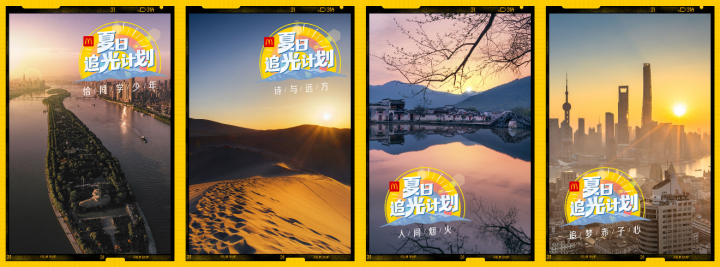 7月6日,麥當(dāng)勞“夏日追光計(jì)劃”從西安大雁塔出發(fā),來到長沙橘子洲頭,領(lǐng)略“恰同學(xué)少年”的意氣風(fēng)發(fā)。從敦煌、漠河,到青海湖和張掖,一起尋找“詩與遠(yuǎn)方”??缭角鄭u、杭州、福州、大連、蘇州和平遙,看遍“人間煙火”。在廣州小蠻腰和深圳東門,感受“追夢赤子心”。為期28天的追光之旅,暖心浪漫的麥當(dāng)勞為大家搜集不同城市的日出,并用四個(gè)主題串起28地。敬請關(guān)注麥當(dāng)勞嗶哩嗶哩(B站)帳號,鎖定連續(xù)28天的直播,也可以訪問麥當(dāng)勞官方網(wǎng)站觀看每天日出的精華視頻。