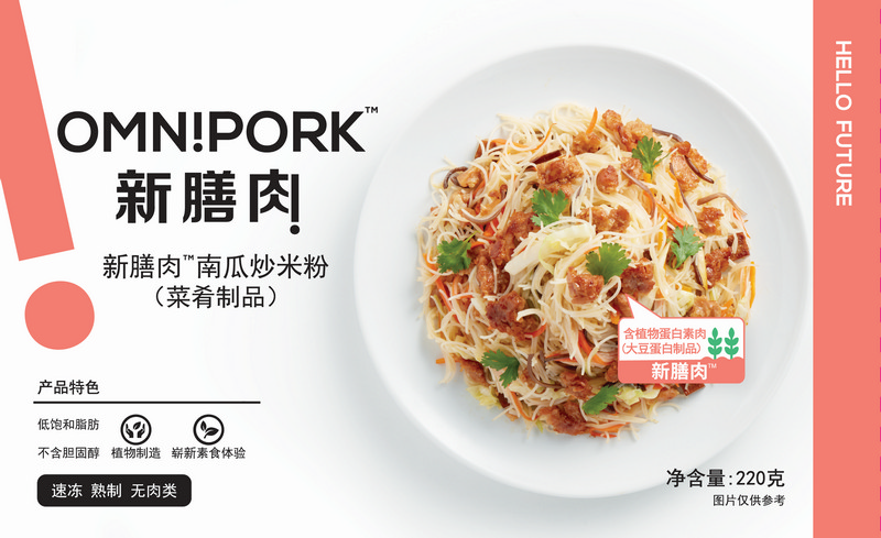 OmniPork新膳肉由純植物配方制成,其特點是烹調(diào)方法多樣,炒、炸、煎、煮都適宜,可以替代真豬肉制作擔擔面、麻婆豆腐、小籠包及蒸肉餅等菜式,是家中必備的健康食材。