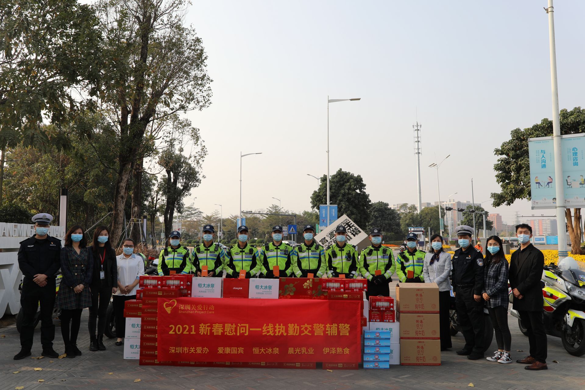 見證客戶端·深圳新聞網(wǎng)2021年1月28日訊(記者 常軍平)“留深過大年,關(guān)愛滿鵬城”。昨日,第十八屆關(guān)愛行動舉行了關(guān)愛交警輔警活動,市關(guān)愛辦聯(lián)合恒大冰泉等五家企業(yè),向南山、光明兩區(qū)交警送去新年大禮包。