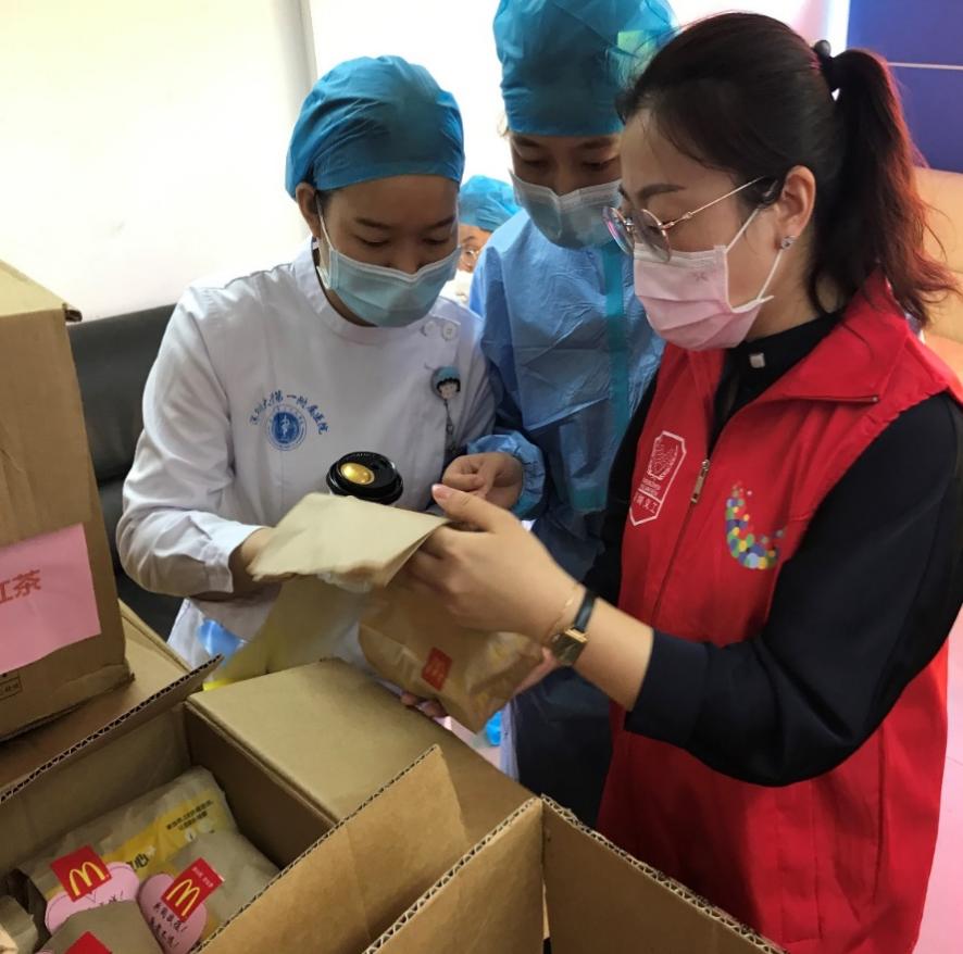 深圳麥當(dāng)勞“麥麥義工團(tuán)”小伙伴們?yōu)榭挂咭痪€醫(yī)護(hù)人員和工作送去愛心餐食