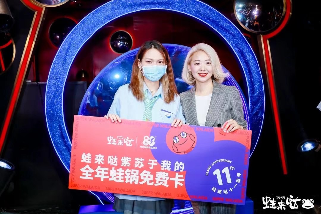 蛙來噠超級品牌日派對上,由蛙來噠董事長羅清親自為“2021年度蛙粉”獲得者頒獎,同時抽取了“蛙來噠全年免排隊卡”以及“蛙來噠全年蛙鍋免費卡”等蛙來噠品牌日專屬大獎,將品牌日的氛圍推向高潮。