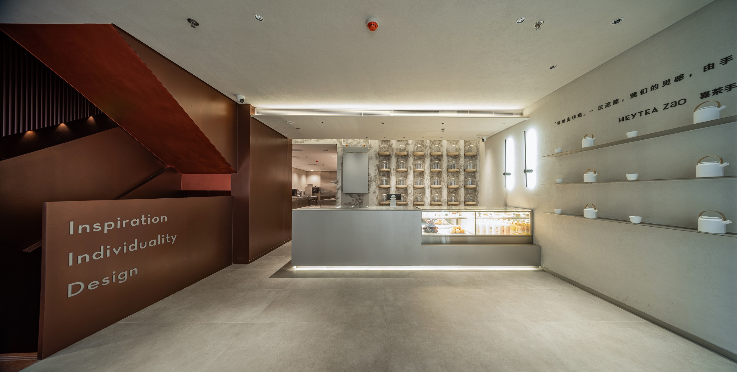 在內(nèi)部設(shè)計(jì)上,喜茶同樣以創(chuàng)新的功能空間設(shè)置和突破性設(shè)計(jì),呼應(yīng)每一樓層的手造主題,升級了消費(fèi)者的空間體驗(yàn)。喜茶將一樓正門墻體改造為玻璃移門,塑造出通透的門店空間;變封閉窗戶為開放的門,讓顧客看得見手造產(chǎn)品的全過程。此外,在用色與材質(zhì)搭配上,門店內(nèi)部整體采用嶺南復(fù)古紅與現(xiàn)代極簡白搭配,做舊復(fù)古肌理漆與現(xiàn)代化金屬材質(zhì)呼應(yīng),不僅有效進(jìn)行功能分區(qū),還體現(xiàn)歷史感與現(xiàn)代感的對比、融合。