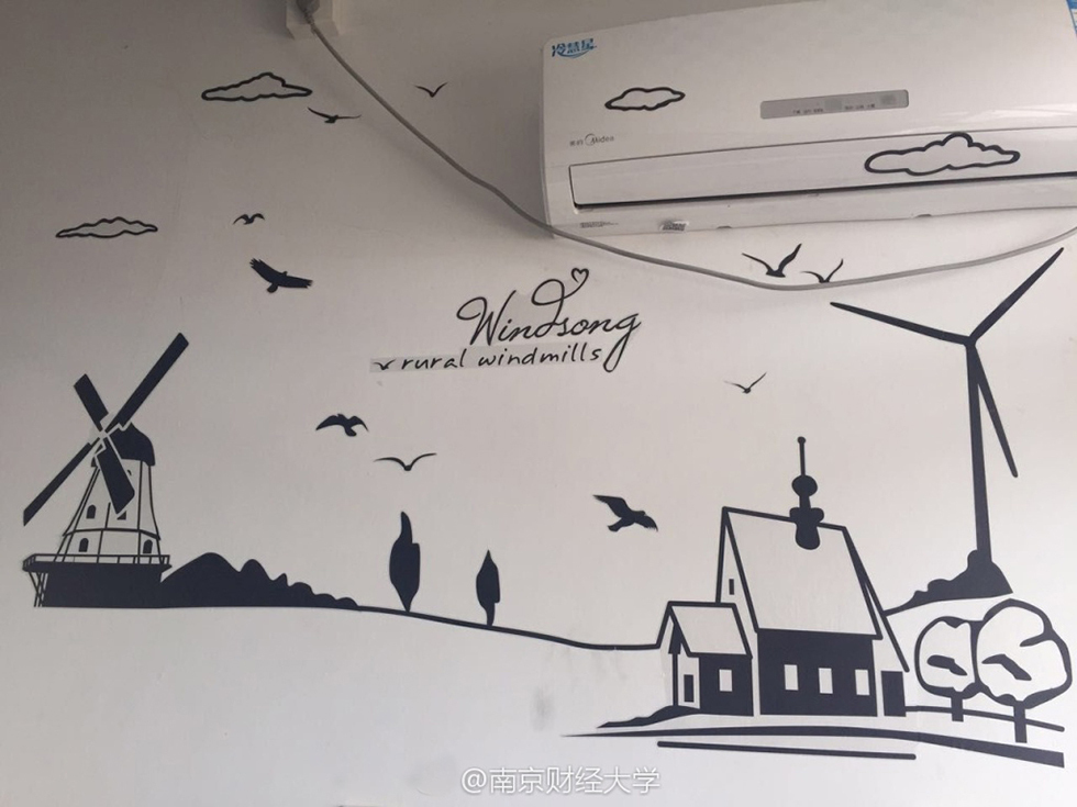 綿綿的草坪、充滿設(shè)計感的書架、掛著素描畫的墻……難以想象這是四個19歲男生的寢室。南京財經(jīng)大學(xué)西苑9幢男生宿舍頂樓602寢室,住著4位“世外高人”—— 涂貴平、柯毅、劉以康和廉鎮(zhèn)宇,他們用事實告訴大家,男生宿舍文藝起來,可絲毫不輸女生。