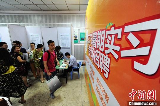 資料圖片:長沙舉辦暑期實(shí)習(xí)生專場招聘 來源:中新社