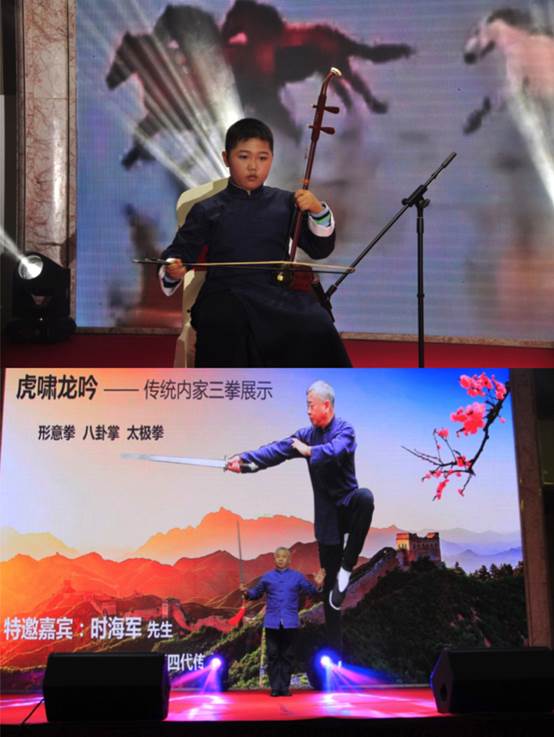 值得一提的是,主辦方還邀請到兩位特別嘉賓助力演出。其一是小小“嶺二代”嚴(yán)嘉一小朋友的二胡獨(dú)奏,他以一曲惟妙惟肖的《賽馬》,將中大嶺南的傳承精神揮灑得淋漓盡致;另外一位,則是深圳校友會鼎力邀請的孫氏內(nèi)家拳第四代傳人時海軍先生,他帶來了難得一見的傳統(tǒng)內(nèi)家功夫表演《虎嘯龍吟》。