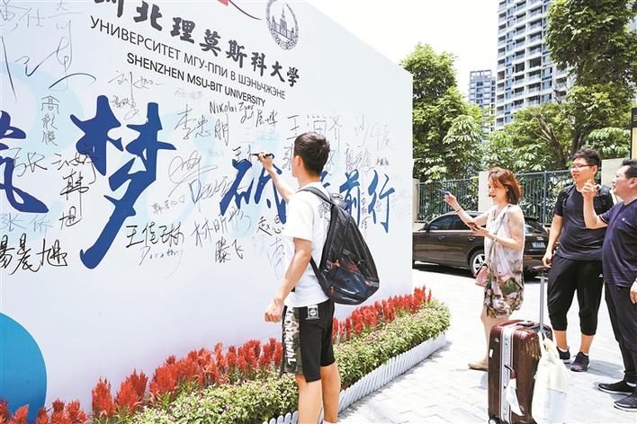 4日當(dāng)天,為了給2018級新生和家長提供良好的服務(wù)和環(huán)境,學(xué)校設(shè)置了資格查驗接待站、繳費服務(wù)站、“綠色通道”接待站、新生親友休息區(qū)等接待站,極大方便了學(xué)生辦理入學(xué)手續(xù)。早上6時30分,第一輛迎接新生的巴士就從校園駛往深圳北站和深圳機場。教學(xué)樓隨處可見中俄兩國國旗以及設(shè)計精美的中、俄、英三種語言的海報,凸顯了學(xué)校國際化特色。