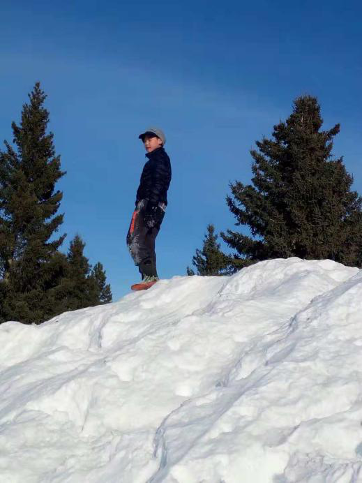 在學(xué)校,一望無際的操場(chǎng)上,雪丘一個(gè)比一個(gè)高,當(dāng)你站在雪丘的至高點(diǎn),笨重的校巴就不再是那么大了。喜歡雪的同學(xué)們一點(diǎn)也不怕冷。他們?cè)谘┑乩锎蚯?、摔跤、滑雪,還不時(shí)地會(huì)聽到尖叫聲,原來是同學(xué)相互在雪丘上推上推下,開心得不亦樂乎。