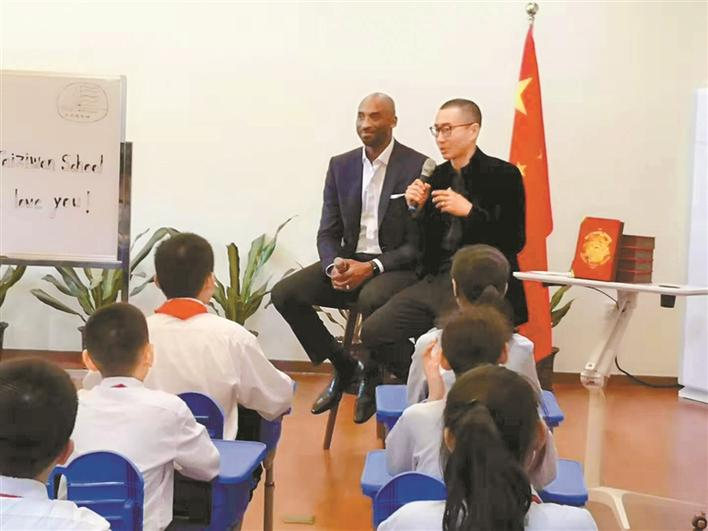 晶報3月18日訊 3月17日上午,參加完籃球世界杯抽簽后的科比如約來到深圳蛇口太子灣學校,給學生們上了一節(jié)課,同時還開了一個新書見面會。