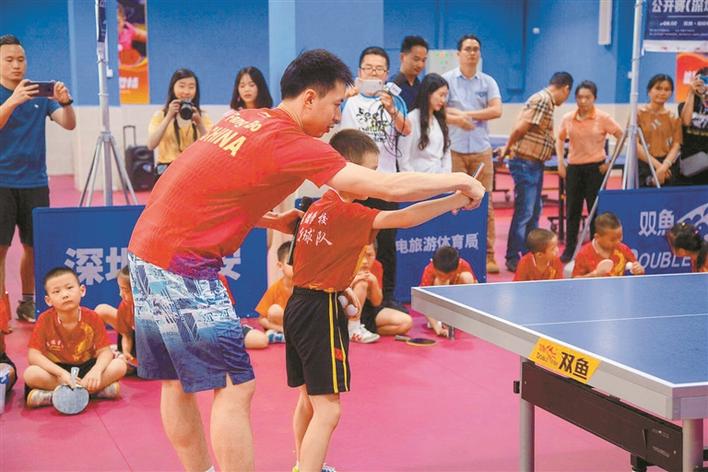 晶報(bào)5月14日訊   5月13日下午,中國(guó)國(guó)家乒乓球隊(duì)運(yùn)動(dòng)員方博、王藝迪出席了“中國(guó)乒乓球隊(duì)進(jìn)校園公益活動(dòng)”。兩位球星與深圳市寶安區(qū)孝德學(xué)校的同學(xué)們開(kāi)展了有趣的乒乓球游戲,在半小時(shí)的互動(dòng)中,同學(xué)們實(shí)現(xiàn)了與球星的零距離交流學(xué)習(xí),體驗(yàn)了乒乓球的多種玩法。