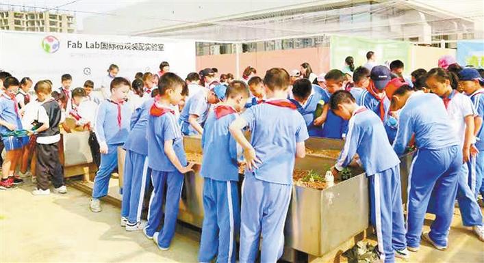 如何找到這所學(xué)校獨具特色的發(fā)展道路,吳少文一直在思考探索。在探索過程中,吳校長發(fā)現(xiàn)現(xiàn)代城市兒童存在“自然缺失癥”,再加上勞動教育的弱化,學(xué)校生態(tài)教育內(nèi)容和體驗的嚴(yán)重缺失,都對孩子們情感、態(tài)度和價值觀塑造造成了嚴(yán)重的負(fù)面影響。面對這一現(xiàn)狀,吳校長始終秉承“日新其業(yè),潤田致真”的校訓(xùn),在“善教育,法自然”辦學(xué)理念的引領(lǐng)下,將“自然主義教育”融入學(xué)校的校本課程,以新田社區(qū)原有的“田文化”傳承為切入點,因地制宜,在校園里開辟一塊教育田,逐步打造校園體驗學(xué)習(xí)空間,建立生態(tài)體驗式實踐基地,讓孩子們在無處不在的真實情境中學(xué)習(xí)成長。