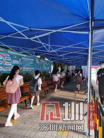 我起了個大早,高高興興地來到學(xué)校。在校門口不遠(yuǎn)處,我看見一排排金色小腳印在望著我笑,好像在對我說:“歡迎你返校!”進(jìn)入校園后,熟悉的林蔭道下多了許多的大帳篷,帳篷中間有一個巨大的測溫箱。走過測溫箱,一排感應(yīng)免洗洗手液站得筆直,正在招呼我們趕緊洗手消毒。因為新冠疫情,我們的校園不一樣了,多了許多守護(hù)我們健康的安全小衛(wèi)士。