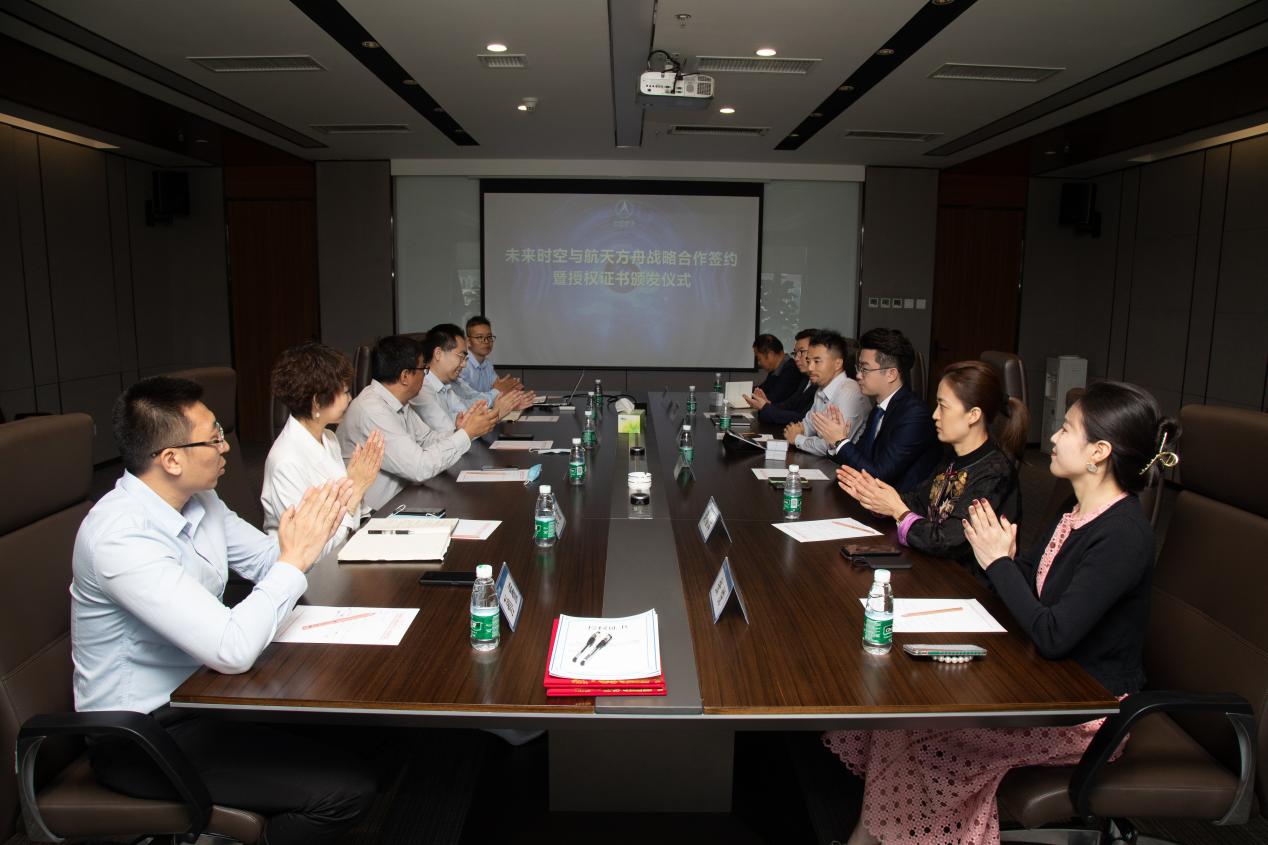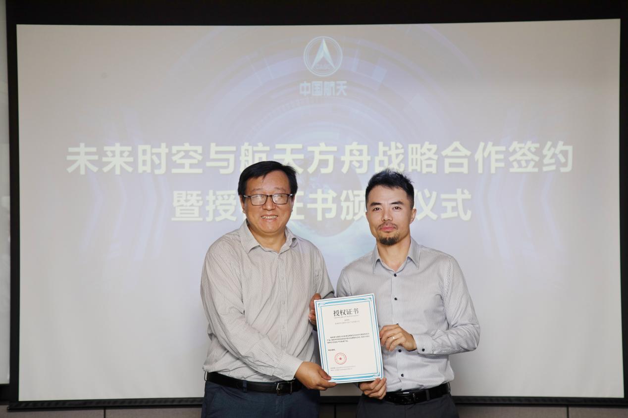 見圳客戶端·深圳新聞網(wǎng)2021年5月31日訊 (記者 陳彬)為深入推進(jìn)航天科技文化技術(shù)在社會(huì)生活、人民健康、科普教育、素質(zhì)教育和文化產(chǎn)業(yè)等領(lǐng)域的成果轉(zhuǎn)化和廣泛應(yīng)用,在中國(guó)航天系統(tǒng)科學(xué)與工程研究院有關(guān)領(lǐng)導(dǎo)的關(guān)心幫助下,未來時(shí)空(深圳)文化產(chǎn)業(yè)有限公司和北京航天方舟空間技術(shù)有限公司就航天文創(chuàng)產(chǎn)品開發(fā)、航天康養(yǎng)項(xiàng)目建設(shè)、航天科普教育及商業(yè)化航天器應(yīng)用等方面達(dá)成了全面合作,于5月28日上午在北京簽署戰(zhàn)略合作協(xié)議并頒發(fā)授權(quán)證書。