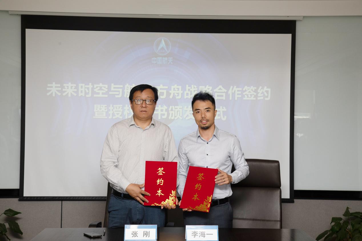 北京航天方舟空間技術(shù)有限公司董事長(zhǎng)張剛,未來時(shí)空(深圳)文化產(chǎn)業(yè)有限公司創(chuàng)始人兼董事長(zhǎng)李海一、北京航天方舟空間技術(shù)有限公司總經(jīng)理孫愻,未來時(shí)空(深圳)文化產(chǎn)業(yè)有限公司聯(lián)合創(chuàng)始人陳欣泉、楊宇環(huán)等出席本次儀式。