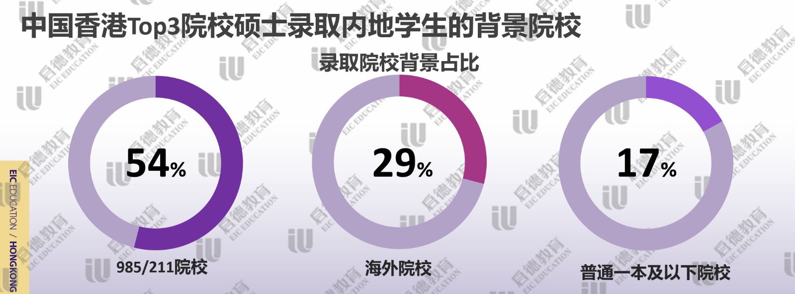 申請香港高校提交雅思成績較多,啟德留學(xué)2021客戶服務(wù)數(shù)據(jù)顯示,近3成錄取學(xué)生雅思成績達(dá)到7分或以上,主要集中在金融、會計、傳媒、英語教育等熱門專業(yè);雅思達(dá)到6.5分占比幾乎一半,代表了香港高校錄取學(xué)生的平均水平;雅思6分占比不到四分之一,主要分布于理工科或冷門專業(yè)。香港TOP3名校(香港大學(xué)、香港科技大學(xué)、香港中文大學(xué))錄取的碩士學(xué)生中,985/211院校背景的學(xué)生超過了一半;因疫情因素導(dǎo)致海外留學(xué)生的回流,近30%的碩士學(xué)生來自于海外院校本科;雙非院校的占比僅為17%,集中于需要豐富實習(xí)和工作經(jīng)驗的理工科。擁有實習(xí)/科研等經(jīng)歷占比為99%,其中,超八成學(xué)生完成了3次以上的實習(xí)/科研。