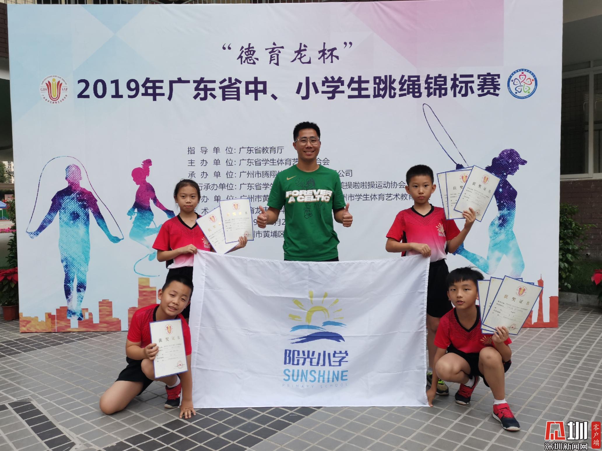 11月22—24日,2019年廣東省中、小學(xué)生跳繩錦標(biāo)賽在廣州黃埔區(qū)東薈花園小學(xué)舉行,深圳市南山區(qū)陽(yáng)光小學(xué)林鑫輝、鄒相君、周昊宇、胡曉楠四位同學(xué)摘得2金1銅的好成績(jī)。