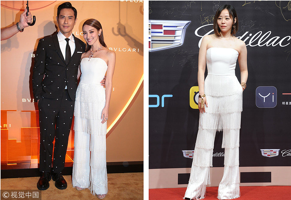 ????陳凱琳 VS 張靚穎撞衫:Nicole+Felicia 2019春夏系列流蘇抹胸連體褲。 (圖片來(lái)源:視覺中國(guó))
