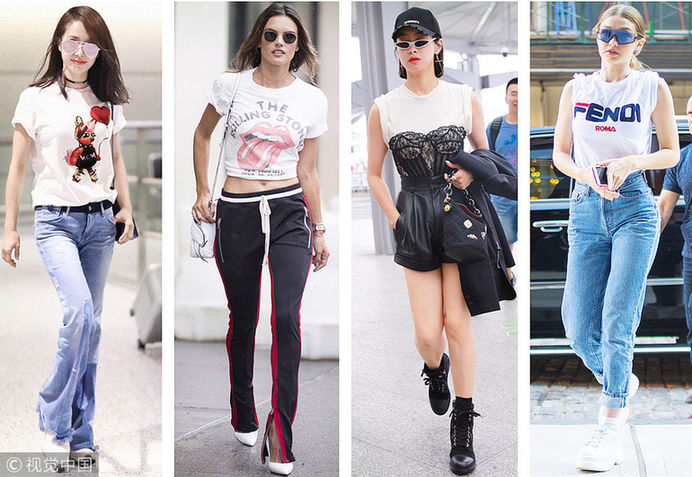 ????夏日炎炎怎么穿才最簡(jiǎn)約清爽?答案一定是T恤無(wú)疑了!只是一本正經(jīng)的尋常穿法又怎么會(huì)是時(shí)髦精的所愛(ài),宋茜、吉吉帶頭玩起挽袖新花樣,大面積露玉臂,清涼又養(yǎng)眼?。▓D片來(lái)源:視覺(jué)中國(guó))