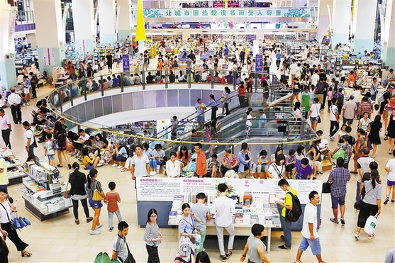 深圳領(lǐng)全民閱讀風(fēng)氣之先,自2000年起就開(kāi)展了以讀書(shū)月為代表的全民閱讀活動(dòng)。十七年來(lái),無(wú)處不在的閱讀文化活動(dòng)正改變著深圳。2016年深圳居民年均閱讀紙質(zhì)圖書(shū)8.94本,年閱讀電子圖書(shū)為10.47本,都遠(yuǎn)遠(yuǎn)超過(guò)全國(guó)平均值;持圖書(shū)證讀者數(shù)量占全市常住人口比重、年人均借書(shū)量、家庭藏書(shū)量、人均購(gòu)書(shū)量均穩(wěn)居全國(guó)第一。