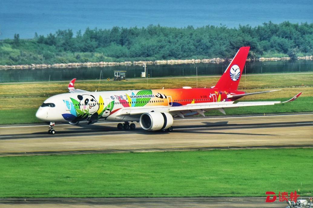 川航A350飛機首秀深圳 “熊貓彩繪”驚艷深圳機場