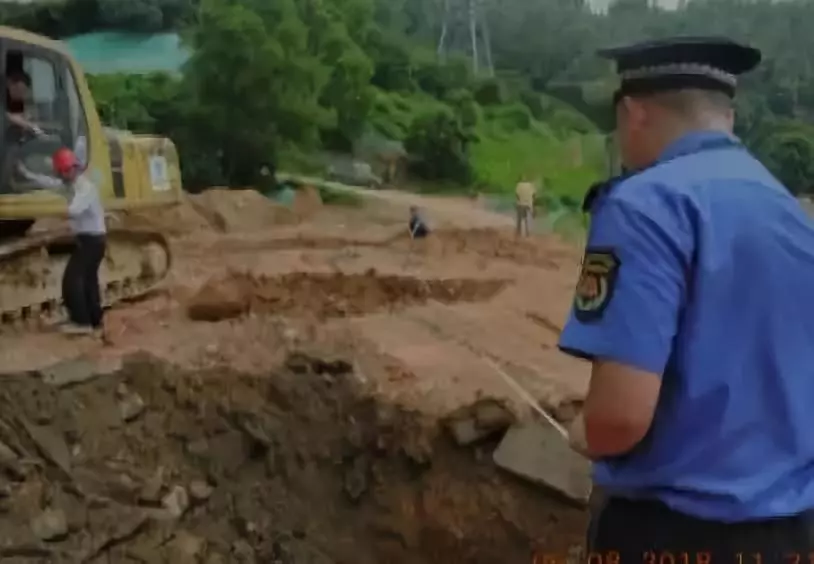 執(zhí)法隊(duì)介紹,這里是正在建設(shè)中的大井山生態(tài)公園的工地。土方開(kāi)挖,自然會(huì)形成一些洼地。