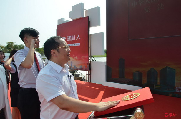 深圳新聞網(wǎng)訊 “我宣誓:忠于中華人民共和國(guó)憲法,維護(hù)憲法權(quán)威,履行憲法規(guī)定的公民基本義務(wù),做一名愛(ài)國(guó)、敬業(yè)、誠(chéng)信、友善的守法市民,為深圳建設(shè)法治中國(guó)示范城市努力奮斗!”