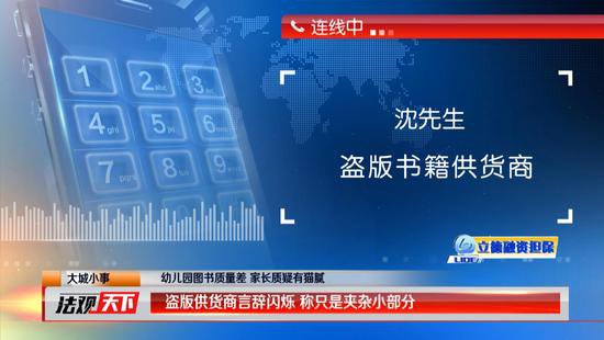 為了證明自己并未與供貨商有所勾結,園長當場給供貨商沈先生打了電話,面對大家的質(zhì)問沈先生言辭閃爍。面對園長的質(zhì)疑,這名供貨商剛開始只承認自己所供的書籍只有一小部分是盜版,不過,在園長的質(zhì)問下,最后他終于承認,自己提供的書全部都是盜版書籍。