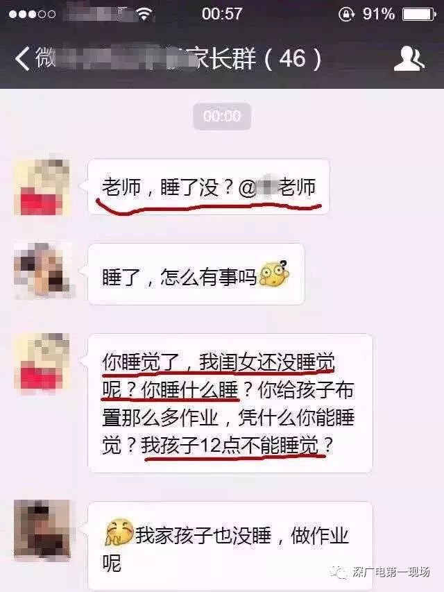 微信的內(nèi)容是這樣的,家長(zhǎng)問:"老師,睡了嗎?"老師看了之后回了句"睡了,怎么有事嗎?"沒想到家長(zhǎng)的回答是"你睡覺了,我閨女還沒睡覺呢?你睡什么睡?你給孩子布置那么多作業(yè),憑什么你能睡覺?我孩子12點(diǎn)不能睡覺?"