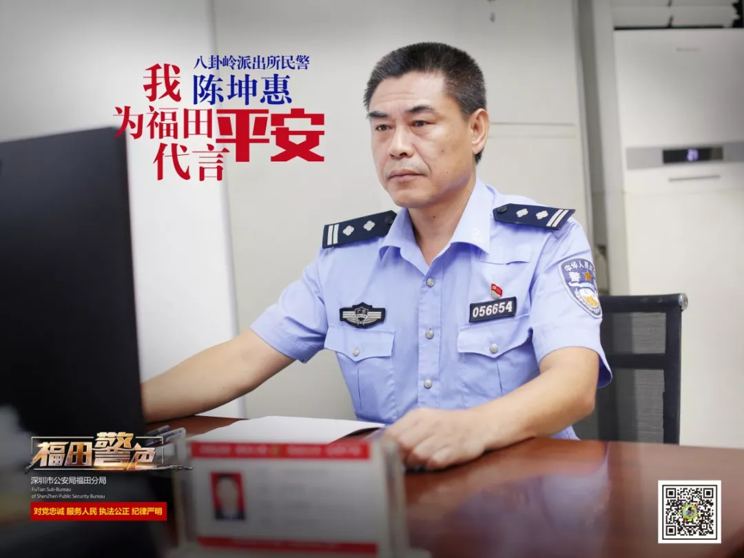 陳坤惠,48歲,1995年1月加入福田警隊。現(xiàn)為八卦嶺派出所華林社區(qū)民警,曾榮獲優(yōu)秀共產(chǎn)黨員1次,優(yōu)秀公務員2次。