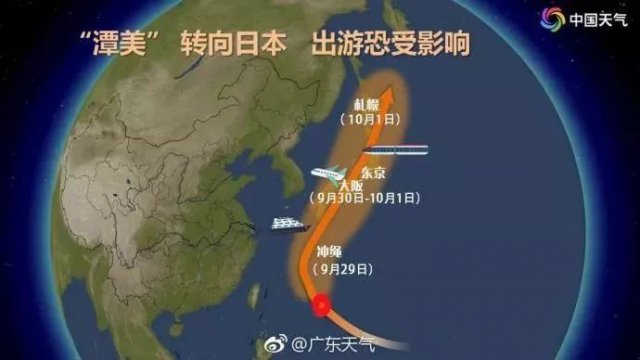 另據(jù) @廣州天氣,"潭美"28-29日最接近臺(tái)灣,隨后掉頭往東北方向移動(dòng),國(guó)慶期間前往臺(tái)灣的朋友不用擔(dān)心。