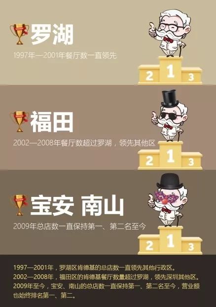 深入了解肯德基的開店數(shù)據(jù),小編發(fā)現(xiàn),肯德基居然也是一路向西發(fā)展??芍^羅湖、福田、南山寶安,各領(lǐng)風騷數(shù)年。