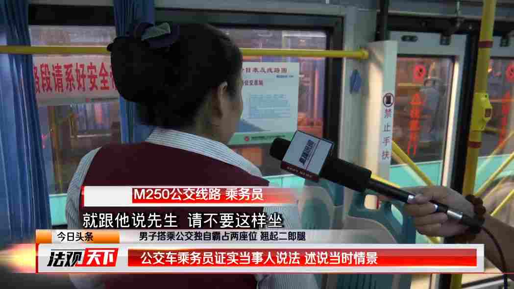 西部公汽M250線路乘務(wù)員和記者說到:當時我發(fā)現(xiàn)他這樣坐以后,就跟他說先生,請不要這樣坐,然后可以給別的乘客讓個座位,當時他就有點很不友善地說,你要干嘛,你要干什么。