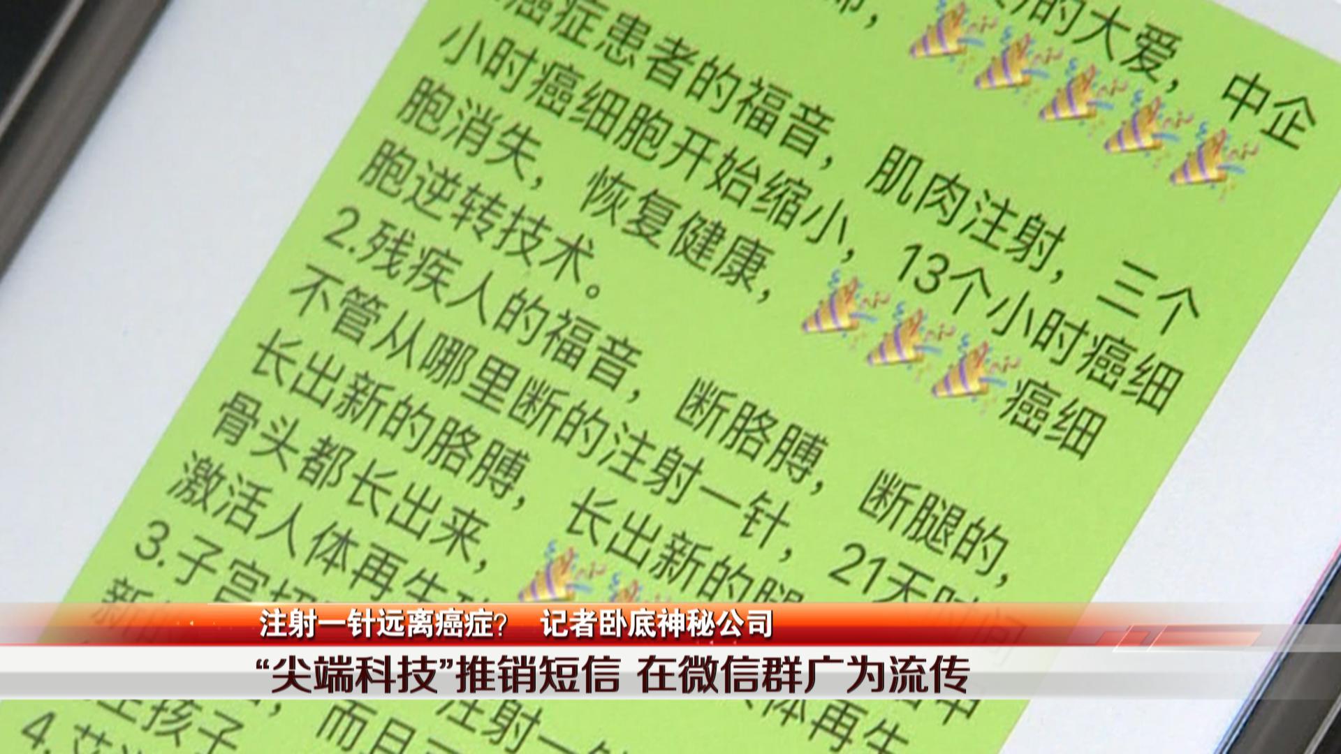 “先機,先機,改變?nèi)祟惷\的生物科技”,這條號稱改變患者命運的短信在一些微信群里流轉(zhuǎn),短信內(nèi)容號稱只要打一針,就能治愈身體上所有的疾病,其中包括癌癥、肢體再生、子宮再生、糖尿病、青春逆轉(zhuǎn)等,還呼吁將短信轉(zhuǎn)給有需要的患者,并表示向全國招募合伙人。