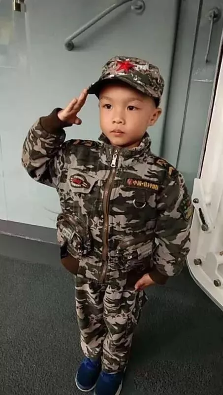 深圳市民黃女士身穿?;晟琅c兒子在深圳艦前甲板自豪地說:“我父親就是一位退伍的老海軍,而我的小孩也對海軍有一種特別的感情?!?/p>