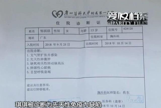 據(jù)了解,當(dāng)琪琪才三個月大的時候,她就開始每天呼吸困難,那個時候去醫(yī)院檢查,醫(yī)生就說是肺上有個氣泡,后來治療了一下就好了。