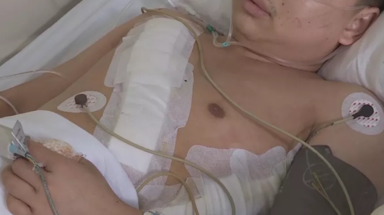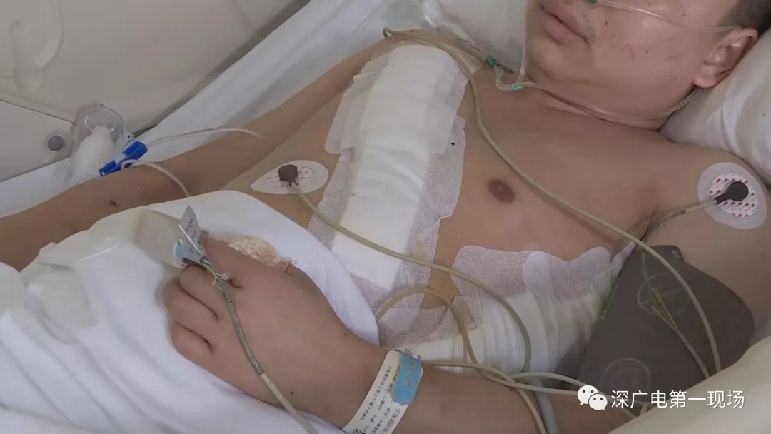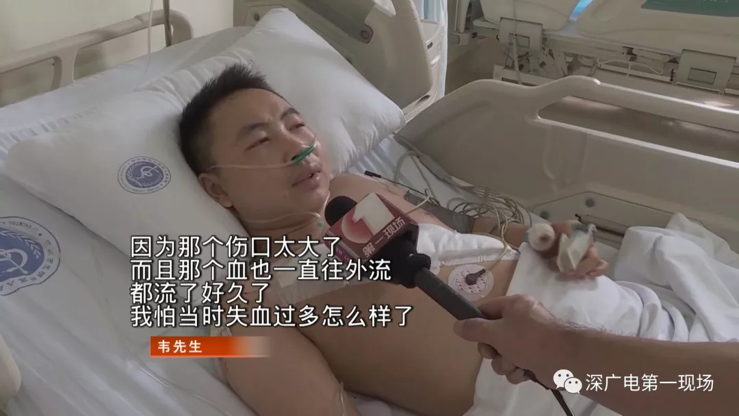 經(jīng)過(guò)急救,傷者韋先生已被轉(zhuǎn)往胸外科接受治療。韋先生說(shuō),昨天晚上因?yàn)榈秱朐旱目刹恢顾粋€(gè)人。