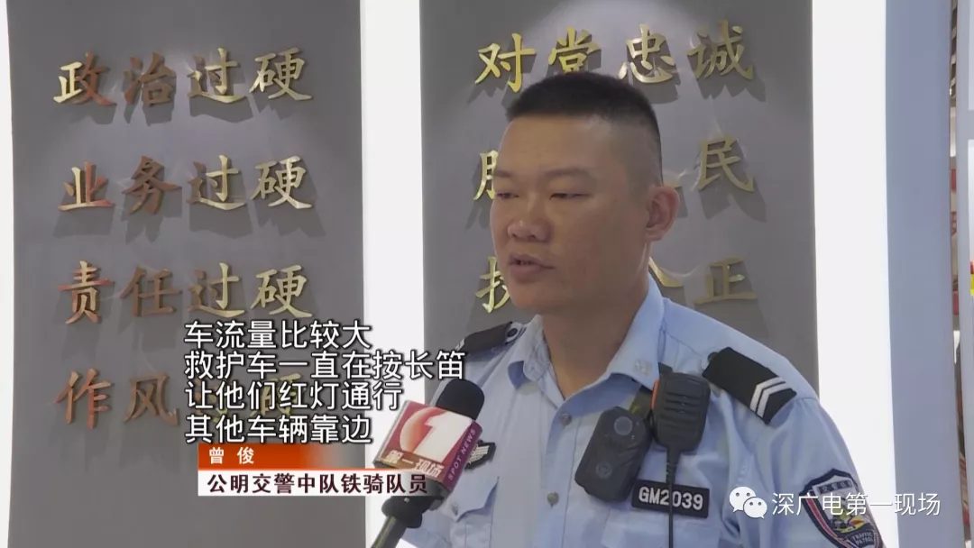 在場(chǎng)的四名鐵騎隊(duì)員立即進(jìn)行分工,在救護(hù)車被堵的紅綠燈口,其中一名鐵騎,曾俊首先對(duì)救護(hù)車前方等待紅燈的車輛進(jìn)行疏導(dǎo)。