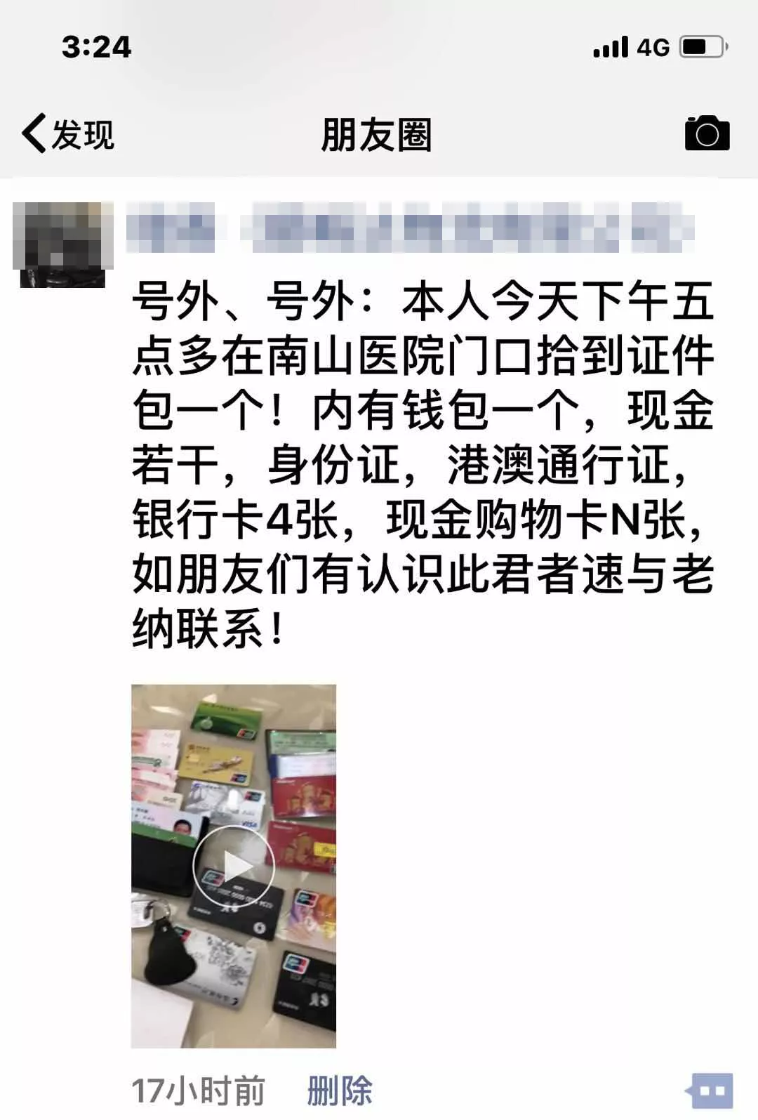 ▲梁先生在朋友圈發(fā)布的失物招領(lǐng)信息。