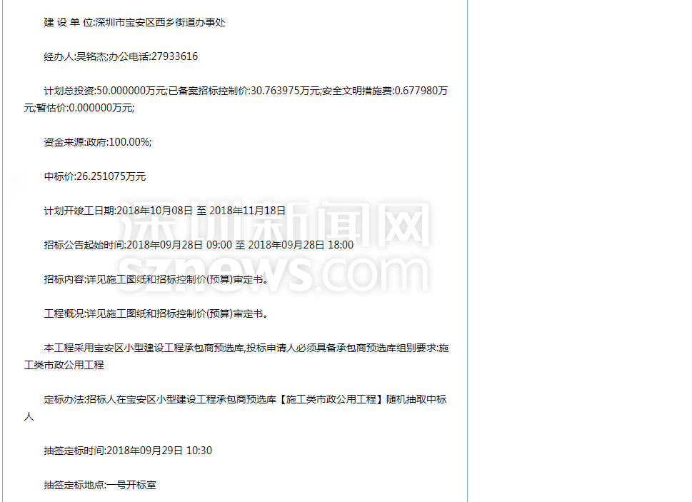 針對(duì)網(wǎng)友反映的情況,記者查閱相關(guān)資料發(fā)現(xiàn),寶安智園小學(xué)門前的施工工程于2018年9月28日公開招標(biāo)。