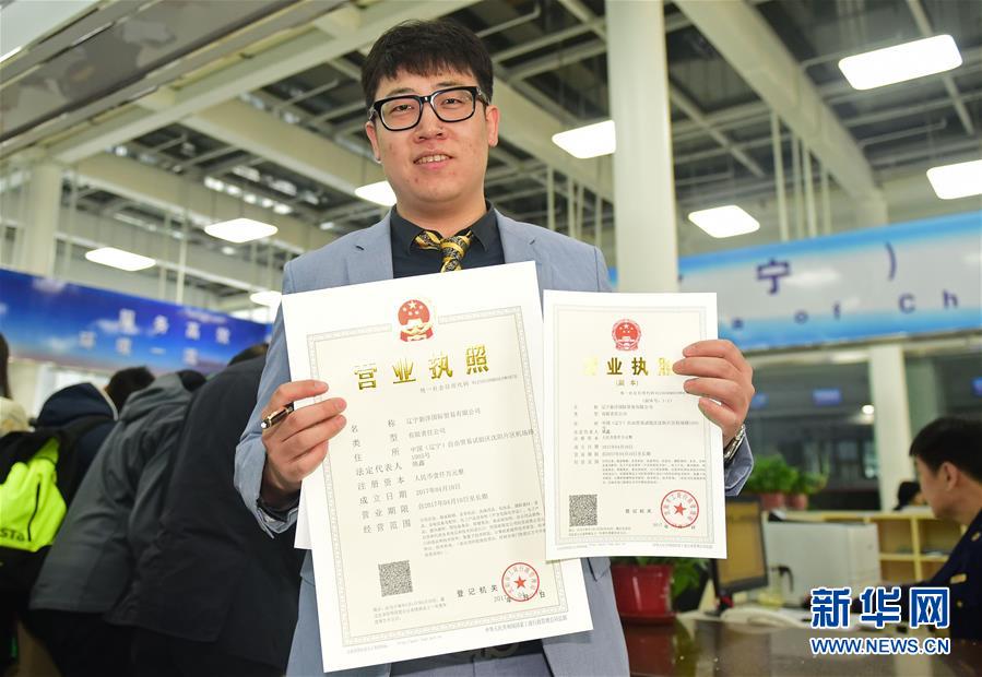 在沈陽片區(qū)政務(wù)服務(wù)中心,一位企業(yè)代表注冊(cè)當(dāng)天拿到了營(yíng)業(yè)執(zhí)照(2017年4月10日攝)。新華社記者 楊青攝