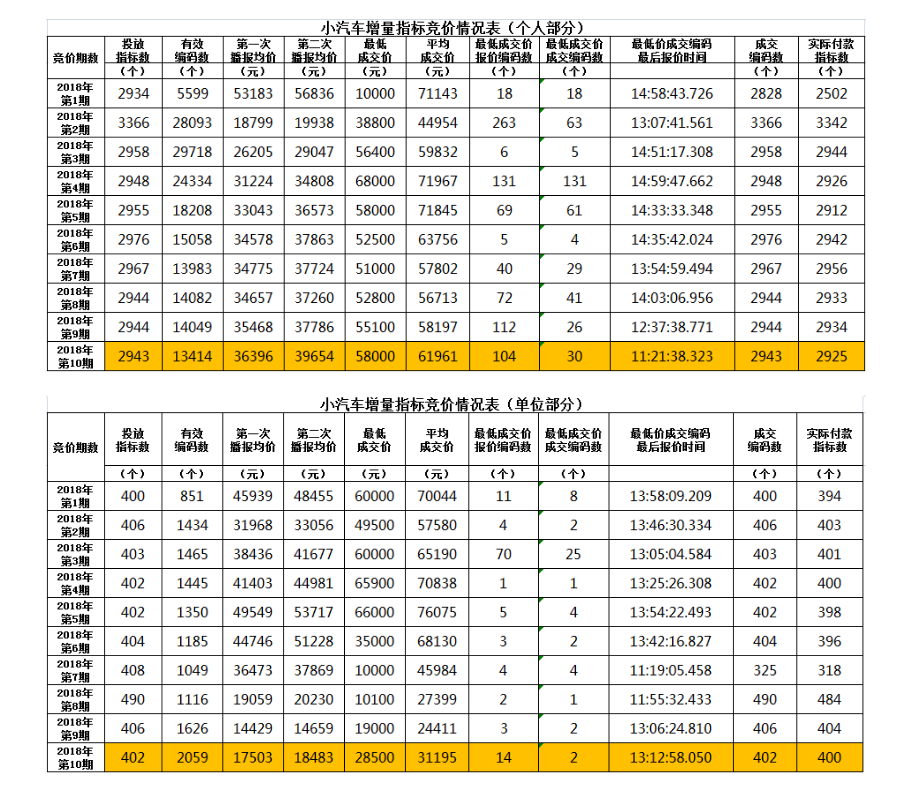 據(jù)悉,10月份個(gè)人指標(biāo)最低成交價(jià)58000元,平均成交價(jià)61961元。