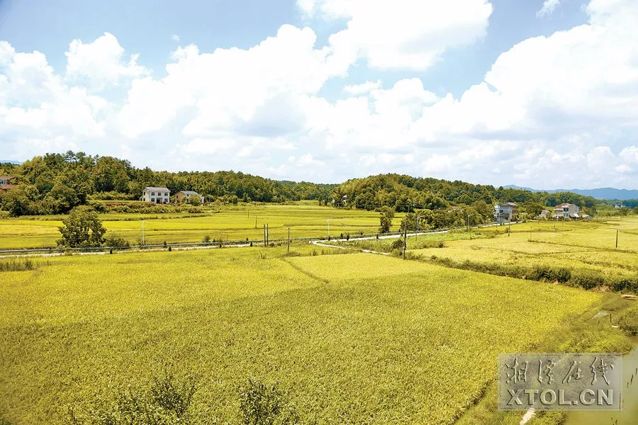 8月7日立秋,湘潭縣分水鄉(xiāng)珍鴿村的田間一季稻、再生稻即將成熟,此時的水稻需水量少,受旱情影響小,長勢喜人。(記者 羅韜 攝)
